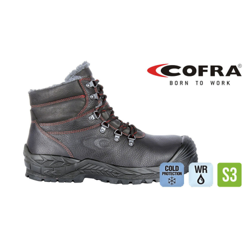 Téli Cofra munkavédelmi bakancs. Felső része: hidegnek ellenáll, vízlepergető. Bélés: lélegző szőrme+Thinsulate Talp: Cold Defender hőszigetelő talp Védelem: Kompozit kapli, APT talplemez (fémmentes) Szabvány: EN ISO 20345:2011 Hideg időjárásban is j