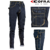 Környezetbarát technológiával készült, cofra munkásnadrág, farmer, sztreccs anyagból. Bio kőmosott, enyhén koptatott megjelenésű munkásnadrág. Anyaga: 70% pamut, 28% poliészter, 2% elasztán (330 gr/m2). 2 első zseb, 2 farzseb, szerszámakasztó hurok, co