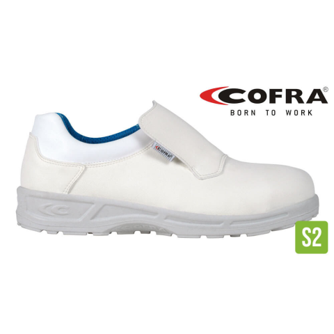 Fehér bebújós munkavédelmi cipő S2 védelmi képességgel, amely acél lábujjvédőt (védőkaplit) tartalmaz. Átszúrás elleni védelem nincs a cipőben! Fehér lábbeli az egészségügy, vegyipar és mikroelektronika részére. Vízlepergető,lélegző felsőrésszel rendelke