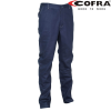 Cofra Derekas munkásnadrág 100% pamut anyagból sötétkék színben. A nadrág a Cofra Massaua családba tartozik. Klasszikus fazonú munkaruha 100% pamutból, 270 g/m2. Egyszerű fazon, de nagyon kényelmes szabás, magas minőségben. Lélegző és a kényelmes visel