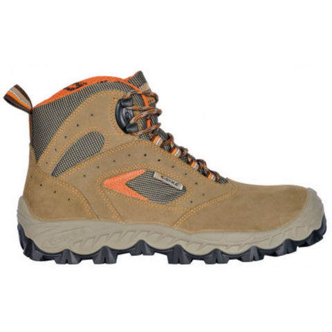 Sportos megjelenésű, kényelmes, könnyű viseletű teljesen fémmentes munkavédelmi bakancs S1P védelmi képességgel. Kapli: Kompozit. Talpásztúrás elleni védelem: fémmentes, hajlékony és könnyű APT. Talpa olajálló, 2 rétegű PU. Bézs színű velúrbőr felsőréss