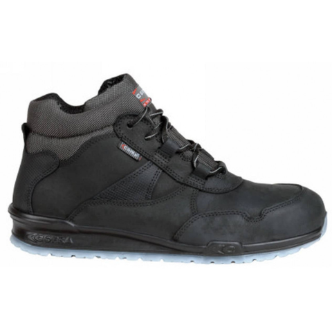 Fekete, minőségi nubukbőrből készült munkavédelmi bakancs, alumínium kaplival és APT talplemezzel. Minőségi, Olaszországban gyártott munkavédelmi bakancs, kényelmes, könnyed, hajlékony viselet. Cofra Ready S3 Fekete Munkavédelmi Bakancs Nubukbőr fels