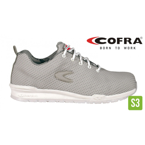 Fehér munkacipő, forradalmian új, innovatív techsell felső résszel. S3-as védelmi képesség, alumínium kaplival, fémmentes APT talplemezzel. Festők számára kifejezetten ajánlott cipő. Teteje vízlepergető, mellé kopásálló és jól lélegző. Cofra White S3 F