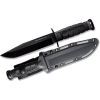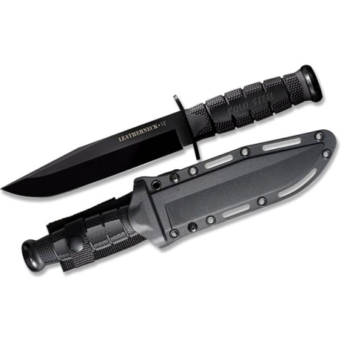 Katonai kés - fix pengés, acél keménysége 62 HRC, markolat anyaga műanyag, penge hossza 17,7 cm, kés teljes hossza 30 cm, tömege 465 g A Cold Steel Leatherneck-SF katonai kés egy robusztus eszköz, amelyet az amerikai tengerészgyalogság hagyományos harci kése ihletett. Az "SF" jelölés a "Semper Fi" (Mindig hűséges) mottóra utal, amely