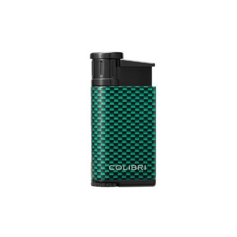 Zöld színű karbon mintás Colibri Evo szivaros öngyújtó 1-es erős Jet lánggal. A ferde szúróláng segítségével könnyeben meg tudjuk gyújtani a szivarunkat. Nagy méretű gáz tartálya van, hogy ne kelljen sűrűn újra tölteni a gyújtót, az alján pedig a láng állító keréken a Colibri logója látható.Méretek:7,5 x 3,3 x 1,8 cmSúly: 89 g