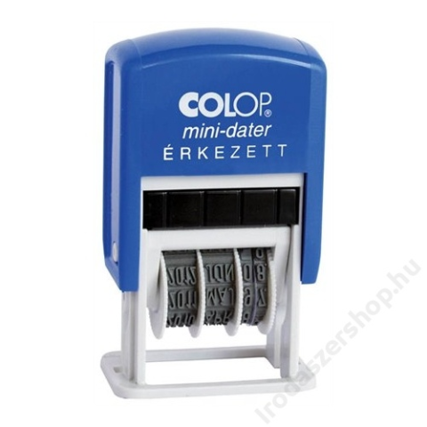 Dátumbélyegző, COLOP S 160/L, Érkezett (IC1051657) - azonnali használatra kész dátumbélyegző a leggyakrabban használt irodai szavakkal - év/hónap/nap dátumformátummal - az évszalag 12 évig használható - a szöveg kék, a keltezés piros színben jeleni