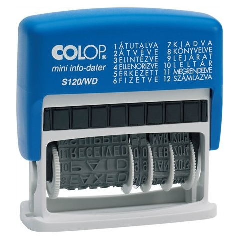 1 kép COLOP S120/WD dátumbélyegző és szövegbélyegző, 12 féle szöveggel