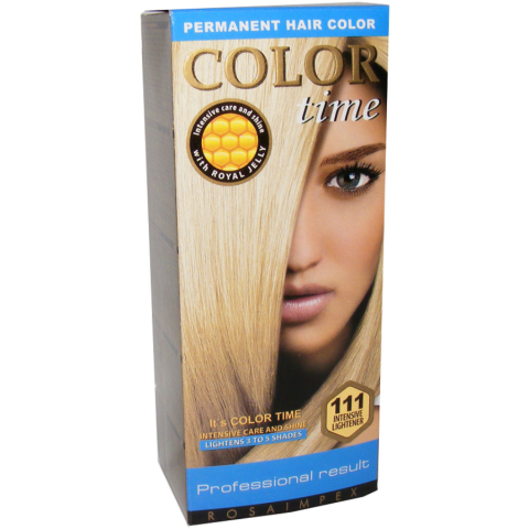 Color Time hajfesték tartós hajfesték méhpempővel. A méhpempő regenerálja, hidratálja és vitalizálja a hajat, csillogást és intenzív ápolást nyújt. A Color Time gél formula hihetetlen színállóságot biztosít. Szín pigmentek a zselével kombinálva mélyen behatolnak a haj belsejébe ezáltal garantálják az élénk színt. A Color Time egy speciális szilikon kondicion