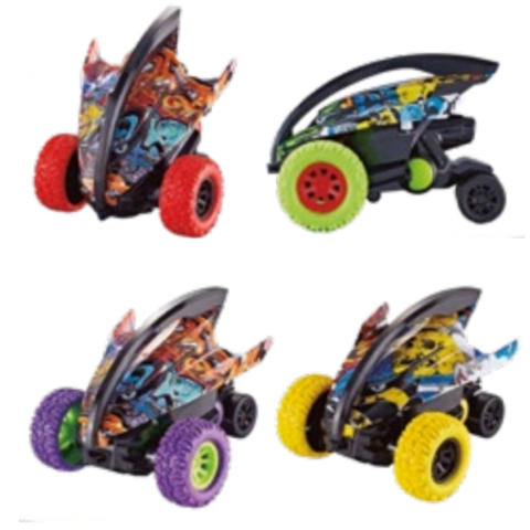 Remek szórakozást nyújt majd a gyerekeknek a fantasztikus Graffiti kaszkadőr autó , mely különlegesen kialakított hátsó kerekének köszönhetően szédületes mutatványokra képes. A lendkerekes meghajtású kocsit elég egy kicsit meglökni az induláshoz, és a lendület már viszi is tovább. Amint a kocsi akadályba ütközik, a hátsó kerék felpattan és azonnal 360 fokos fordul