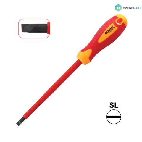 A Commel szigetelt csavarhúzó professzionális elektromos munkákhoz készült. A mágnesezett vég és az ergonomikusan kialakított markolatt megkönnyítik a használatot. Az IEC 60900 szabvány szerinti tanúsítás. 1000 V feszültségig. Csavarhúzó méret: SL 6,