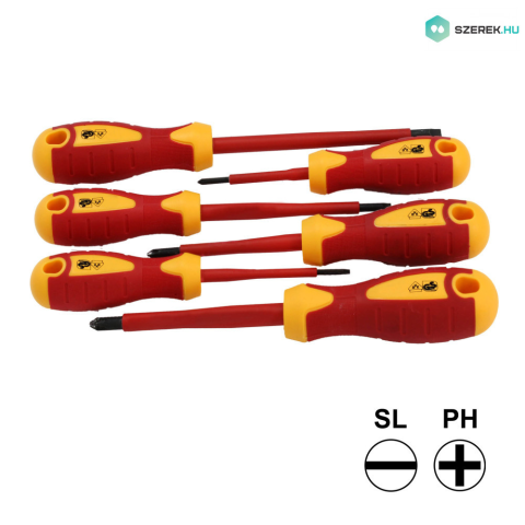 A 6 részes szigetelt csavarhúzó készlet professzionális elektromos munkákhoz készült. A készlet 3 lapos és 3 csillag csavarhúzót tartalmaz. A mágnesezett vég és az ergonomikusan kialakított markolatt megkönnyítik a használatot. Az IEC 60900 szabvány s