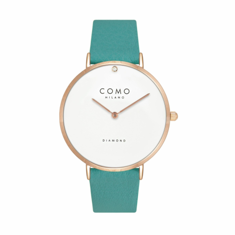 Como Milano Diamond Női Karóra - Elegáns stílus türkiz bőr szíjjal 💎 A Como Milano Diamond női karóra tökéletes választás a kifinomult stílust kedvelő nők számára. A rosegold színű nemesacél óratok és a türkiz valódi bőr szíj egyedi és divatos megjel...