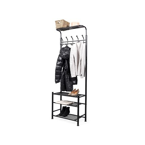 1 kép Compactor előszobai ruhaakasztó cipőspolcokkal, fém, fekete