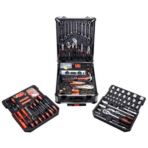 Szerszámkészlet - praktikus alumínium bőrönd, 186 db kiváló minőségű szerszám, 4 szintes, teleszkópos fogantyúval és kerekekkel, különböző fogókat, csavarhúzókat, racsnis kulcsot, kalapácsot, vízmértéket, oldalsó és imbuszkulcsot tartalmaz, alapvető kötőelemeket és sokféle kiegészítő eszközt, amelyek alkalmasak otthoni használatra, garázsban vagy utazáskor, mérete: 36x51x20cm A Compass KRAFT MAN készletben megtalálsz minden szerszámot, amire szüksége
