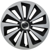 Dísztárcsa 14" - osztott, matt felületű, fekete és ezüst kivitel, anyaga ABS műanyag, 4 darabos csomag A tartós ABS anyagból készült dísztárcsák nemcsak az egyszerű fémtárcsák elegáns lefedésére alkalmasak, hanem részleges védelmet nyújtanak a víz, piszok és só ellen. Ezen felül utánozzák a modern öntö
