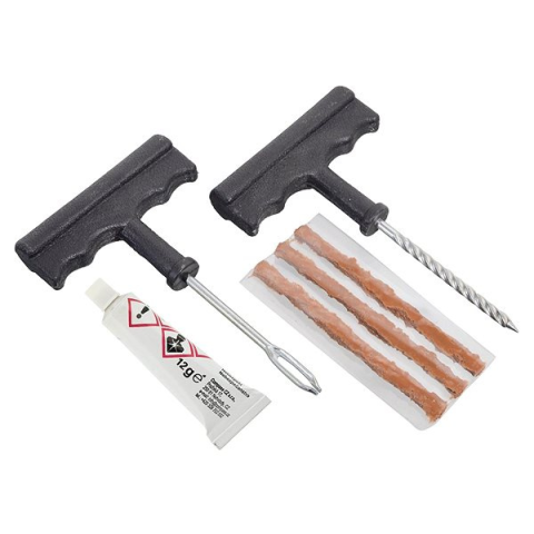 Defektjavító készlet - gumiabroncs futófelületének vészhelyzeti javítására, tisztító tű, fúró, 3 db javító rúd, cement alapú ragasztó Tömlő nélküli gumiabroncsokhoz alkalmas javító készlet, annak érdekében, hogy az olyan hibák is javíthatók legyenek, amelyre a tömítőanyag nem elegendő. Olyan javító kanócot tartalmaz, amely behatol a