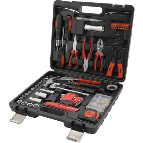 Szerszámkészlet 159 db, CrV, tartalmaz: 3/8 ", tartalmazza: kalapács, hatlapú kulcs, fogó, csavarhúzó, műanyag tok A HOUSE tartó egy praktikus eszközkészlet, amelyet minden ezermester értékelni fog. A minőségi szerszámok mellett rögzítőelemeket is tartalmaz, amelyek a kisebb és nagyobb javításokhoz és tele
