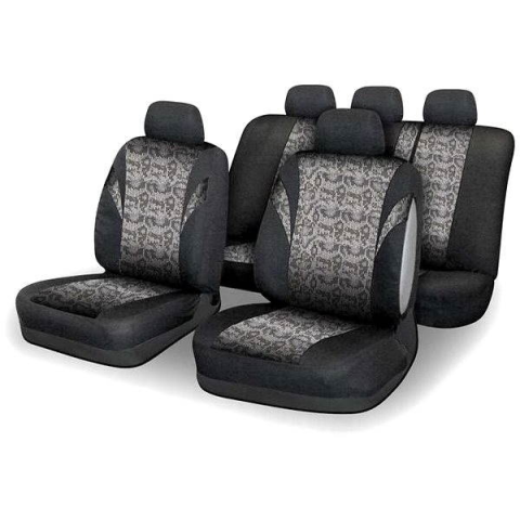 Autós üléshuzat - anyaga textil, univerzális méretű, osztható huzat a hátsó üléshez, 5 üléshez készült, fejtámlával, légzsákos ülésre való Compass seat covers JACK III. is set to motorists contains 9 pcs blankets suitable for a large number of commonly used car seats. The covers are designed for the whole car and are made ??of reinforced