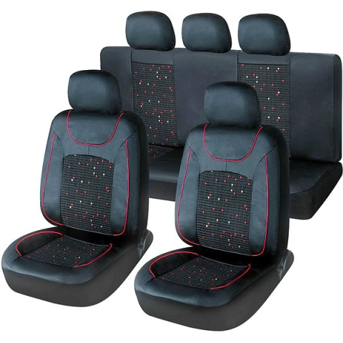 Autós üléshuzat - anyaga műbőr és textil, univerzális méretű, osztható huzat a hátsó üléshez, 5 üléshez készült, fejtámlával, légzsákos ülésre való A praktikus COMPASS autós üléshuzat gondoskodik arról, hogy az eredeti ülések tiszták maradjanak és nagy mértékben megkönnyíti a szennyeződések eltávolítását. Strapabíró anyagból szabták ki, amely kel