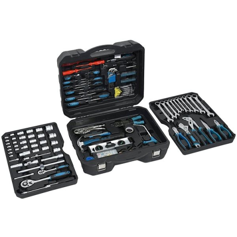 Szerszámkészlet - 257 db, anyaga CrV, racsnik mérete: 1/4 ", 1/2", a következőket tartalmazza: kalapács, villáskulcs, fogó, csavarhúzó, kerekeken guruló műanyag táska A professzionális COMPASS szerszámkészlet mindenféle munkához és javításhoz ideális. Ezzel a készlettel, amely összesen 257 darabot tartalmaz, mindig kéznél lesz a megfelelő szerszám. A szerszámok gyá