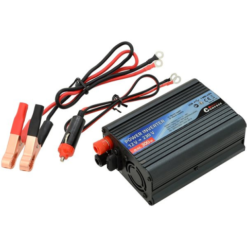 Feszültség-átalakító 12 V-ról 230 V-ra - csatlakoztatható autóakkumulátorhoz és szivargyújtóhoz, 300 W állandó teljesítmény, 600 W csúcsteljesítmény, 1300 mA kimeneti feszültség, módosított szinuszhullám, 1 csatlakozóaljzat, aktív ventilátor és USB csatlakozó, méretei 5,2 × 10 × 13 cm (ma × szé × mé) Ez a feszültségátalakító felbecsülhetetlen értékű eszköz hosszú autós utazásokhoz, ha nincs hozzáférésed a rendszeres villamosenergia-hálózat