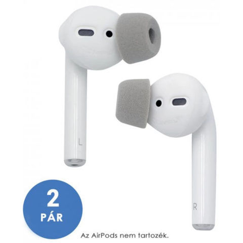 Kifejezetten az Apple Airpods-hoz kifejlesztett adapter és memóriahabos fülilleszték. Az adaptereket a töltéshez el kell távolítani.