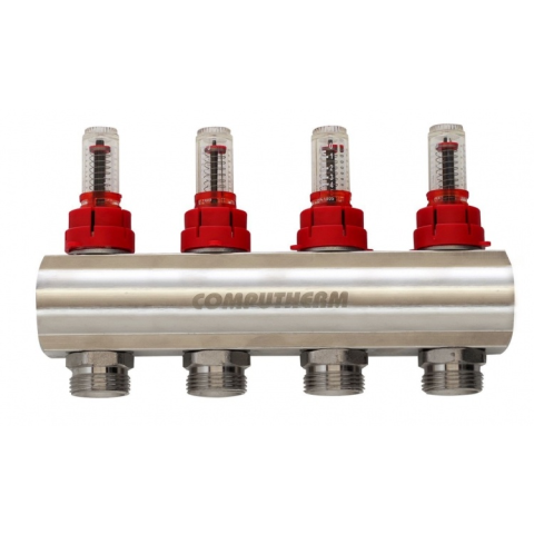 Computherm MF03 áramlásmérővel szerelt osztó 1"-os 4 leágazásos. Fűtési rendszerek több rendszerre való leosztását teszi lehetővé.