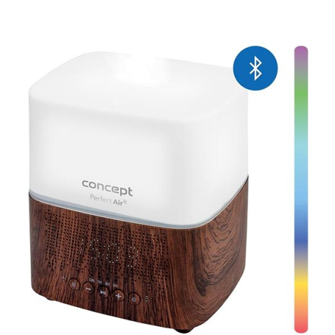 Aroma diffúzor - 300 ml-es tartály, funkciók: párásító, időzítő és automatikus kikapcsolás, 7 színű megvilágítás, 10 óra üzemidő, max. 50 m² nagyságú helyiségekbe ajánlott, 25 dB zajszint, fehér és barna színű, műanyag kivitel CONCEPT aroma diffúzorok/aroma-diffuzorok/concept/18855786-v3995. htmConcept DF2011Főbb jellemzőkFőbb előnyökMűszaki adatokA Concept márkárólConcept DF2011 Perfect Air Dark WoodAroma diffúzorBluetooth