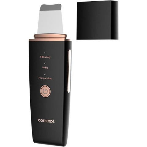 Ultrahangos arctisztító - felhasználási terület kozmetikai termékek felszívódásának segítése, ránccsökkentés, vízálló, automatikus kikapcsolás, időzítő, ház anyaga műanyag, tartozék anyaga fém, 1 tartozék, útmutató, tok a csomag része, akkumulátoros töltés, 1 elem, akkumulátor kapacitás 500 mAh, akkumulátor üzemideje 60 perc, töltési idő 3 óra, mérete 148 × 44 × 16 mm (Ma×Sz×Mé), tömege 100 g CONCEPT ultrahangos spatulák/ultrahangos-arctisztito-ke