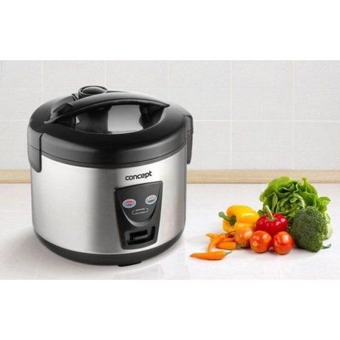 Rizsfőző - űrtartalma 1,5 l, a felszerelés része túlmelegedés elleni védelem, kivehető edény, hőmérséklet megtartása és automatikus kikapcsolás, 650 W teljesítmény, kanál, mérőedény és gőzölő a csomag része, mérete 27,3 × 28,8 cm (Ma×Sz), tömege 2,4 kg, fekete és szürke kivitel A kiváló minőségű Concept RE2020 650W rizsfőző különböző rizsfajták főzéséhez ideális. Remekül alkalmas akármilyen rizsfajta főzéséhez, beleértve a közkedvelt sushi