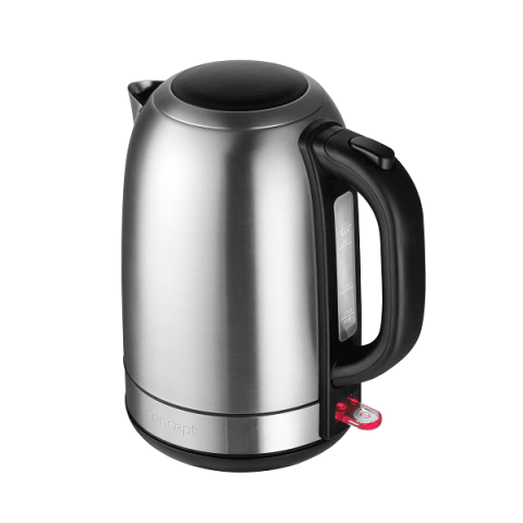 Vízforraló - rozsdamentes, űrtartalma 1,7 l, fekete és ezüst kivitel, 2200 W energiafogyasztás, szűrő, forgótalp, rejtett spirál és kábeltartó rekesz, automatikus fedélnyitás, automatikus kikapcsolás, működésjelző lámpa, víz nélküli működés elleni védelem, vízszint jelző, kivehető szűrő Egy ilyen 1,7 lűrtartalommal rendelkező Concept Vízforraló lehetővé teszi az italok egyszerű és gyors elkészítését. A vízforralót rozsdamentes acélból állítottá