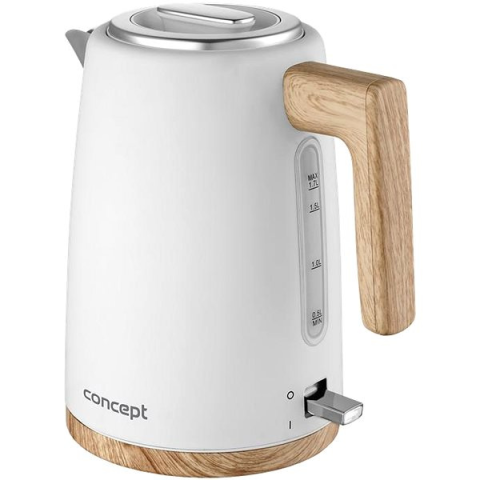 Vízforraló - rozsdamentes, űrtartalma 1,7 l, fehér kivitel, 2200 W energiafogyasztás, szűrő, forgótalp és rejtett spirál, automatikus kikapcsolás, működésjelző lámpa, túlmelegedés és víz nélküli működés elleni védelem, kivehető szűrő Eme 1,7 l-es Concept Vízforraló lehetővé teszi az italok egyszerű és gyors elkészítését. A vízforralót rozsdamentes acélból készítették, nem tartalmaz , nem kívánatos, egészségre ártalmas anyagokat, é