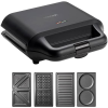 Szendvicssütő - 4 az 1-ben, cserélhető sütőlapok, 2 szendvics egyidejű készítéséhez, háromszög sütőlapok, teflon felület, tapadásmentes felület, mosogatógépben mosható sütőlapok, a csomagban található sütőlapok alkalmasak szendvicshez, gofrihoz, grillezéshez, palacsintához/tükörtojáshoz, automatikus hőmérséklet szabályozás, zárható, hőszigetelt markolat és csúszásgátló talpak a csomag része, 700 W teljesítmény, műanyag burkolat, kábel hossza 56 c