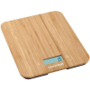 Konyhai mérleg - digitális, felfüggeszthető és sima felülettel, klasszikus dizájn, terhelhetőség max. 15 kg, mérési pontosság 1 g, választható mértékegységek gramm, kilogramm, uncia és libra, automatikus kikapcsolás, időzítő, funkciók TARE, túlterhelés jelzése, alacsony elemfeszültség jelzése, érintéses vezérlés, háttérvilágítású kijelző és óra, anyaga üveg és bambusz, mérete 21,6 × 17,6 × 1,5 cm (Ma×Sz×Mé), 2 AAA elem, elem/akkumulátor a csomag