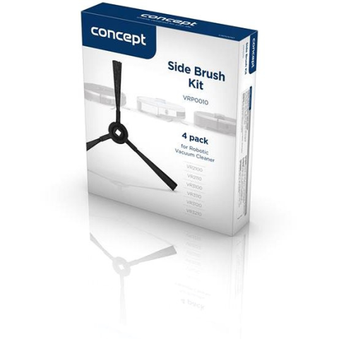Kefe - CONCEPT VRP0010 Oldalsó kefe készlet 4 db, Tartozék a Concept robotporszívókhoz, a csomag tartalma: oldalkefék (4 db), szín: fekete, a következő modellekkel kompatibilis: VR2100, VR2110, VR3100, VR3110, VR3120 és VR3210 Sada příslušenství je kompatibilní s robotickými vysavači Concept VR2100, VR2110, VR3100, VR3110, VR3120 a VR3210. The CONCEPT VRP0010 kit contains four spare side brushes in black, which are