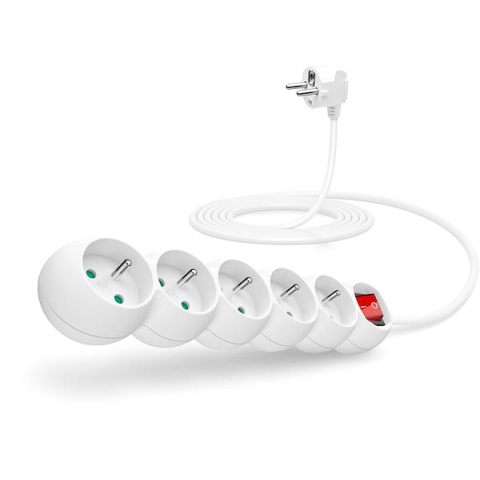 Hosszabbító kábel - hosszúság 3 m, male csatlakozó 1× E/F-típusú dugvilla, female csatlakozó 5× e-típusú dugalj akár 10 A, hajlított végződés Hosszabbító kábel belépési 230 főkapcsolójaként, ami kikapcsoláskor teljesen leválik a tápegység összes csatlakoztatott fogyasztók egyszerre. Extra felszerelés gyermekvédelmi minden aljzat - aljzat pe