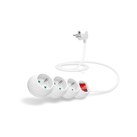 Hosszabbító kábel - hosszúság 1,5 m, male csatlakozó 1× e-típusú dugvilla, female csatlakozó 3× e-típusú dugalj LED-jelző, akár 10 A, Hosszabbító kábel belépési 230 főkapcsolójaként, ami kikapcsoláskor teljesen leválik a tápegység összes csatlakoztatott fogyasztók egyszerre. Extra felszerelés gyermekvédelmi minden aljzat - aljzat pe