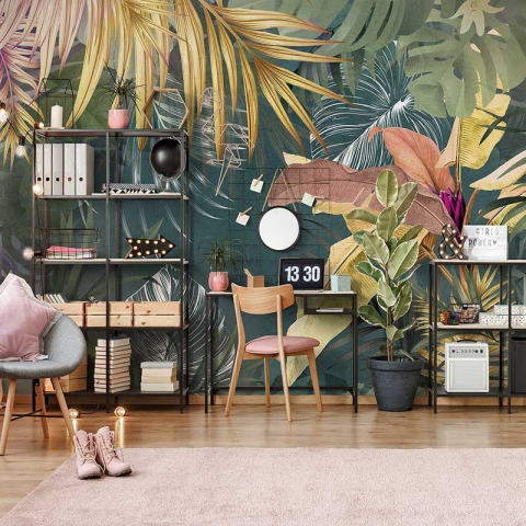 Pálmaág fotótapéta - Dzsungel mintás fali poszter A kép 520 cm széles és 318 cm magas. Növényi rost alapú vlies tapéta. Rendkívül dekoratív és tartós felületet biztosít. A csomag tartalmazza a felrakáshoz szükséges ragasztót. Más méretben is rendelhető