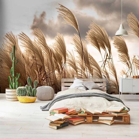 Pampafű mintás fotótapéta A kép 254 cm széles és 184 cm magas - 2 db 92x254 cm-es részből áll. A csomag tartalmazza a felrakási útmutatót és a tapétaragasztót. Rendelésre gyártott termék, ezért a szállítási idő: 10-15 munkanap Ez a minta egyedi méretben i