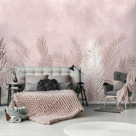1 kép Consalnet Púderrózsaszín alapú bézs pálmalevél mintás fotótapéta
