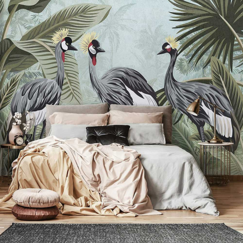 Trópusi darumadár mintás fotótapéta - Trendi madármintás tapéta A kép 416 cm széles és 290 cm magas - 4 db 104x290 cm-es részből áll. A csomag tartalmazza a felrakási útmutatót és a tapétaragasztót. Rendelésre gyártott termék, ezért a szállítási idő: 10-1