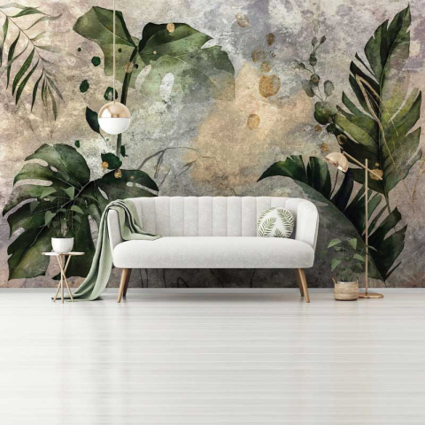 Trópusi levél mintás fotótapéta A fotótapéta 4 részes - 416 cm széles és 254 cm magas. Könnyen kivitelezhető növényi rost alapú vlies tapéta. Rendkívül dekoratív és tartós felületet biztosít. A csomag tartalmazza a felrakáshoz szükséges ragasztót. Más mér
