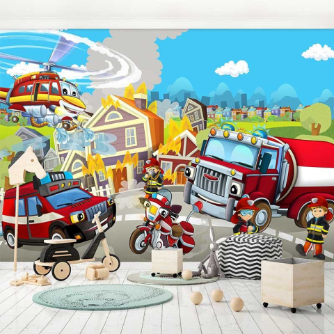 A Tűzoltók fotótapéta 368 cm széles és 254 cm magas. Könnyen kivitelezhető növényi rost alapú vlies tapéta. Rendkívül dekoratív és tartós felületet biztosít. A csomag tartalmazza a felrakáshoz szükséges ragasztót. Más méretben is rendelhető! A vlies ta