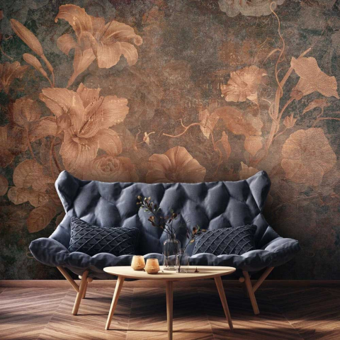 Vintage barna virágmintás fotótapéta A kép 368 cm széles és 254 cm magas - 4 db 92x254 cm-es részből áll. A csomag tartalmazza a felrakási útmutatót és a tapétaragasztót. Rendelésre gyártott termék, ezért a szállítási idő: 10-15 munkanap Ez a minta egyedi
