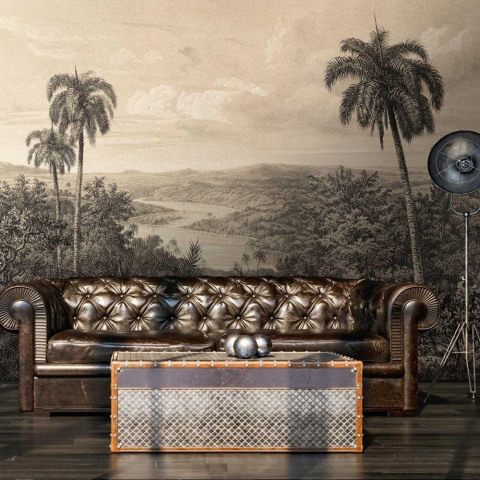 Vintage őserdő mintás fotótapéta A kép 254 cm széles és 184 cm magas - 2 db 92x254 cm-es részből áll. A csomag tartalmazza a felrakási útmutatót és a tapétaragasztót. Rendelésre gyártott termék, ezért a szállítási idő: 10-15 munkanap Ez a minta egyedi mér