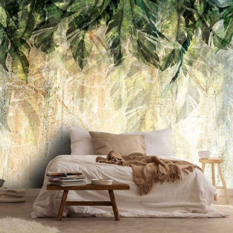 Vintage pálmalevél mintás fotótapéta A fotótapéta 3 részes - 312 cm széles és 219 cm magas. Könnyen kivitelezhető növényi rost alapú vlies tapéta. Rendkívül dekoratív és tartós felületet biztosít. A csomag tartalmazza a felrakáshoz szükséges ragasztót. Má