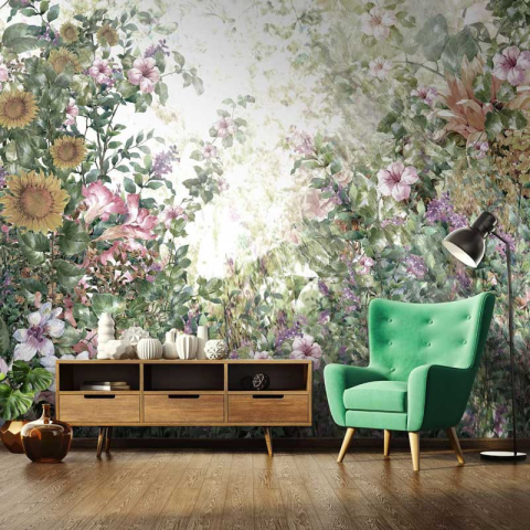 Virágoskert mintás fotótapéta A fotótapéta 2 részes - 254 cm széles és 184 cm magas. Könnyen kivitelezhető növényi rost alapú vlies tapéta. Rendkívül dekoratív és tartós felületet biztosít. A csomag tartalmazza a felrakáshoz szükséges ragasztót. Más méret