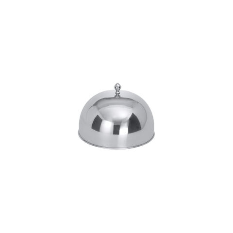 CONTACTO ételfedél magasan polírozott 18/10 rozsdamentes acélból, fogantyúval. Átmérő: 236 mm, magasság: 140 mm. Kiváló minőségű és tartós anyag tálaláshoz és cateringhez.