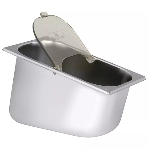 CONTACTO evőeszköztartó 18/10 rozsdamentes acélból, felnyíló akrilfedéllel és ferde aljjal. Ideális az evőeszközök rendezett és higiénikus tárolására. Méretek: magasság 155 mm. Kiváló minőségű rozsdamentes acélból készült.