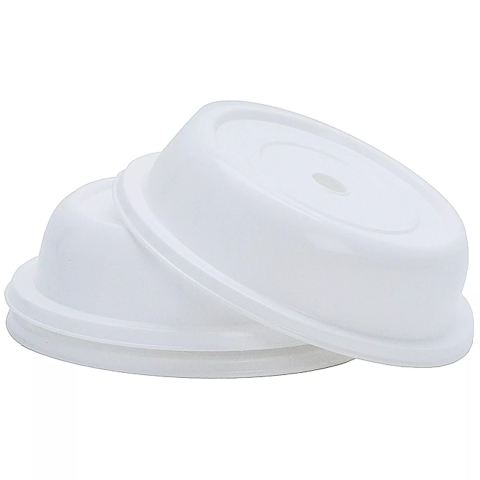 Fehér CONTACTO tányérfedő 280 mm átmérővel és 60 mm magassággal. Polipropilénből készült, -20 °C-tól +120 °C-ig hőálló. Fogantyúnyílással ellátott, mosogatógépbe és mikrohullámú sütőbe alkalmas, egymásra rakható.